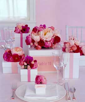 Boxes with stripes, boxes with polka dots, boxes with ribbons and bows, boxes with silver tissue paper... the possibilites and design are endless! Use boxes as food holders, for souviner gifts, or even for centerpeices.